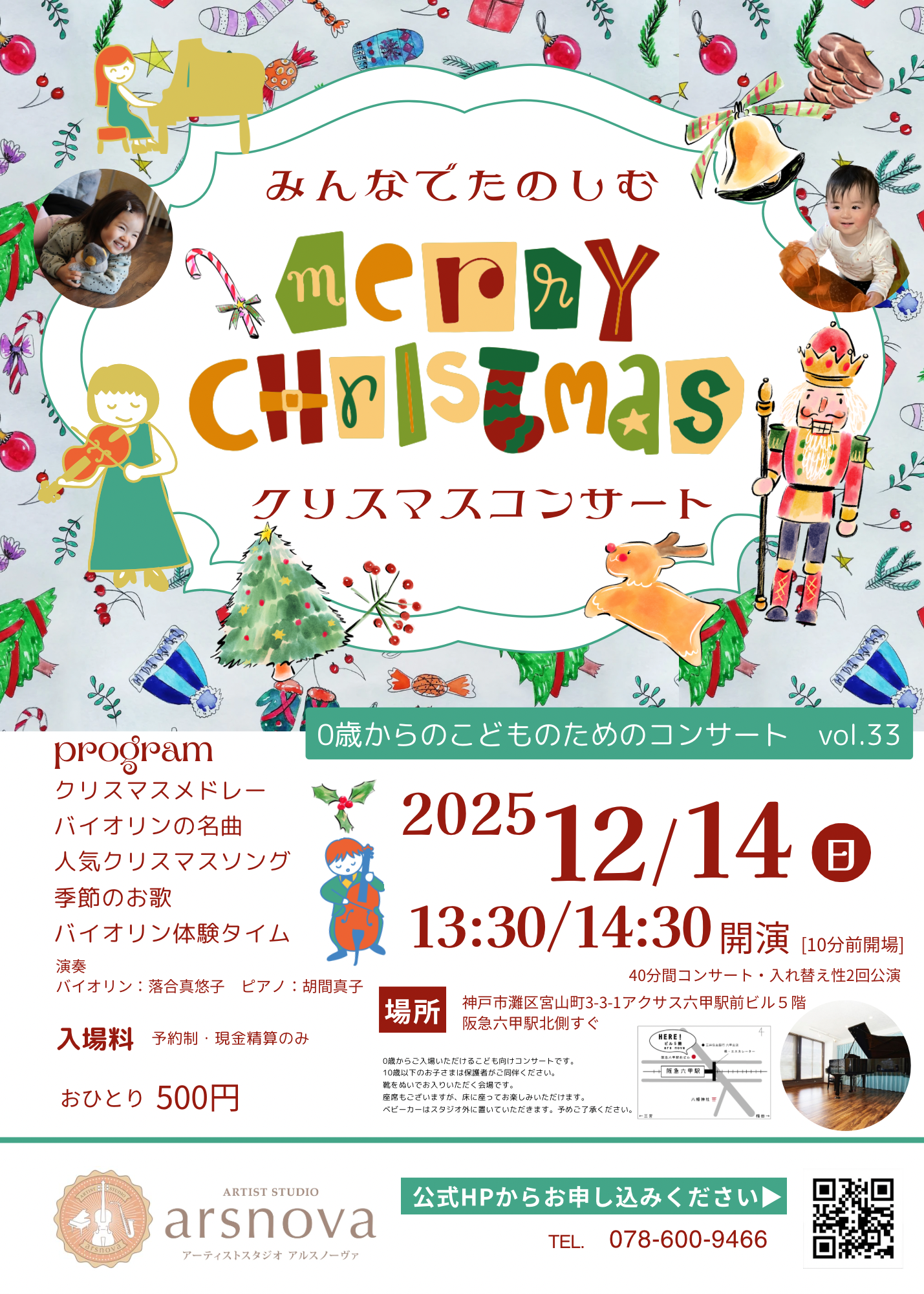子どもコンサートチラシ26 曲目:愛のあいさつ・ガボット・メヌエットト長調・天国と地獄ほか